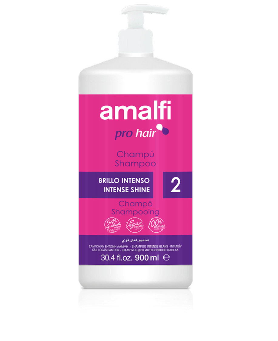 Перегляд Товару: Профeсійний шампунь для Блиску з Дозатором Amalfi 2 Pro Hair Brillo Intenso Shine Амалфі Інтенсивний блиск нормальне сухе 900мл