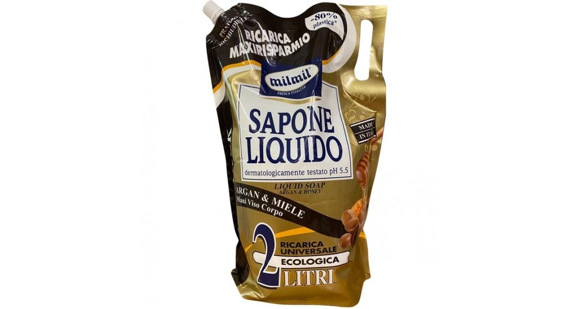 Перегляд Товару: Рідке мило для гігієни MilMil Sapone Liquido Argan&Miele Maxi Refill Bag з арганом та медом Макс 2000мл