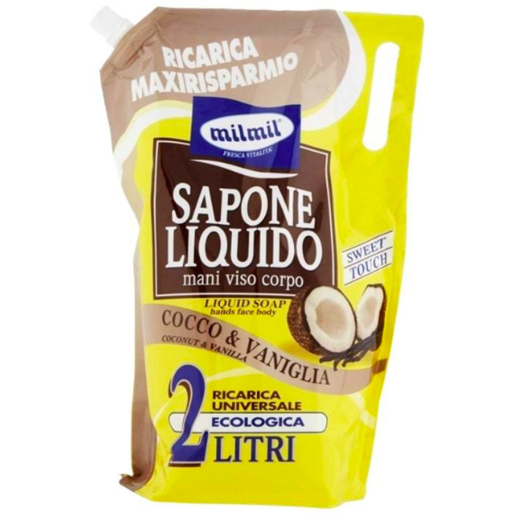 Перегляд Товару: Рідке мило для гігієни MilMil Sapone Liquido Cocco Vaniglia Maxi Refill Bag делікатне Кокос та Ваніль Макс 2000мл