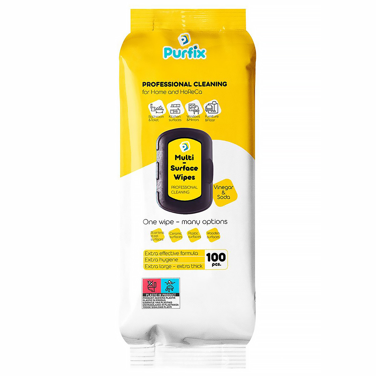 Перегляд Товару: Серветки для прибирання Універсальні Професійні Purfix Multi-Surface Wapes Professional Cleaning Пурфікс Вологі Оцет та Сода 100шт