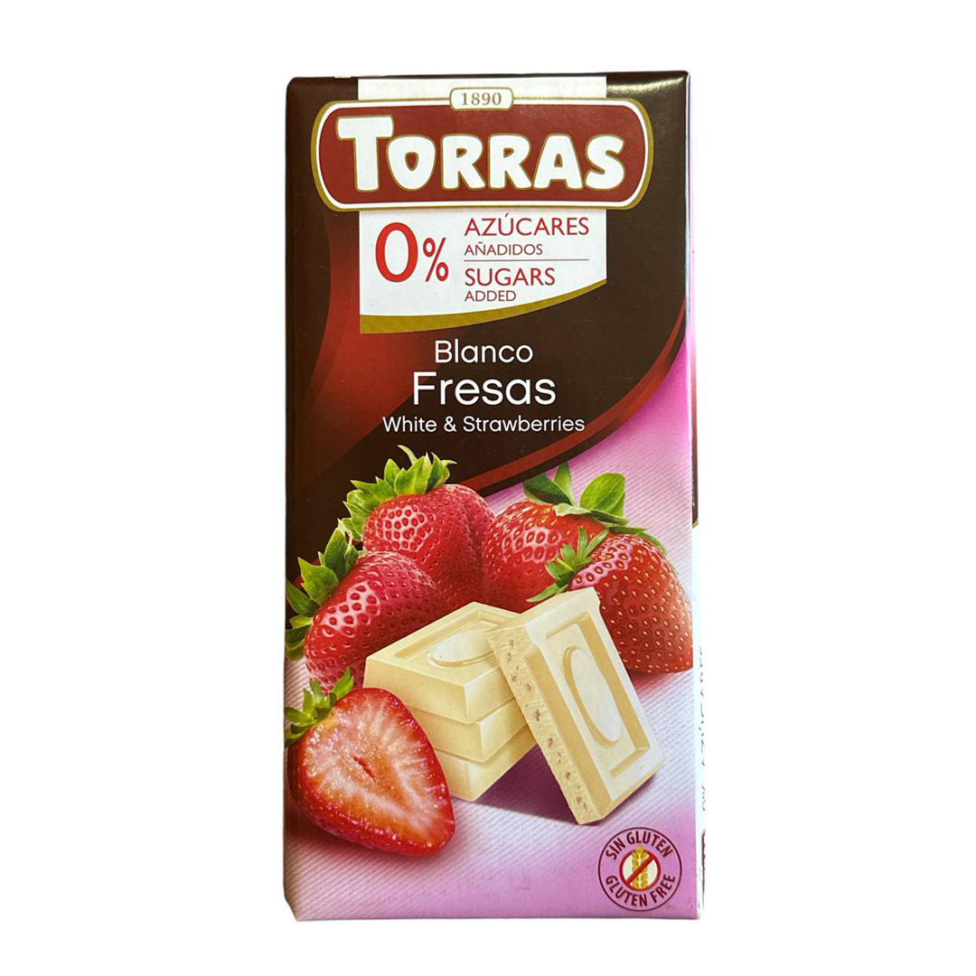 Шоколад Білий без Глютену Torras Blanco White&Fresas Strawberries Chocolate 0%Sugar Торас з Полуницею Плитка 75г