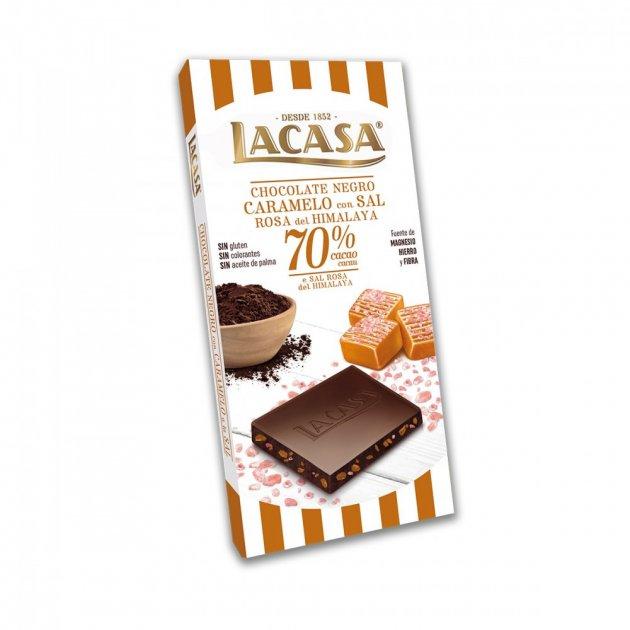 Шоколад чорний 70% з карамеллю та рожевою гімалайською сіллю lacasa без глютену 100 г