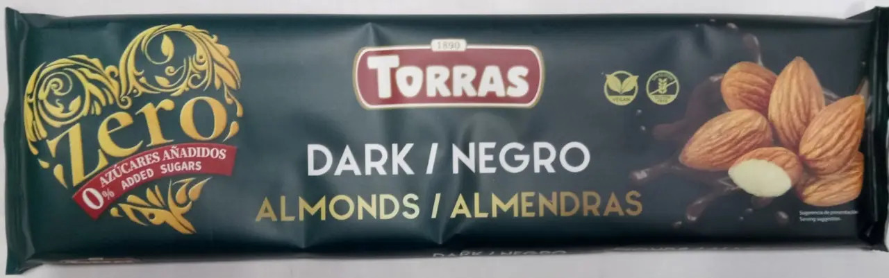 Перегляд Товару: Шоколад чорний без цукру та глютену Torras Zero Dark Negro Almonds з фундуком 300г