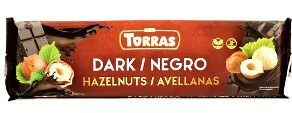 Перегляд Товару: Шоколад чорний без глютена Torras Dark Hazelnuts Gluten free з лісовими горіхами 300г
