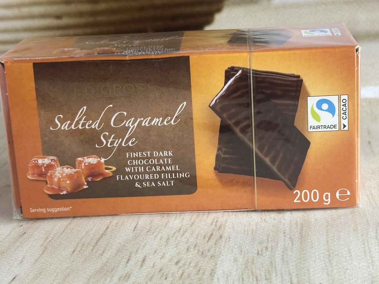 Перегляд Товару: Шоколад чорний з начинкою карамелі та морською сіллю J.D.Gross Salted Caramel Style Finest Dark Chocolate Caramel&Sea Salt 200г