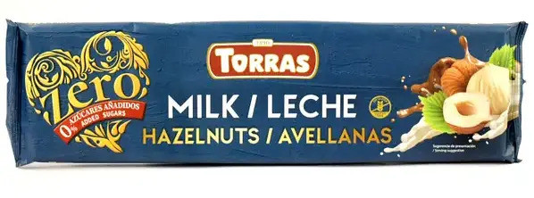 Перегляд Товару: Шоколад молочний без цукру та глютену Torras Zero Milk&Hazelnuts з лісовими горіхами 300г