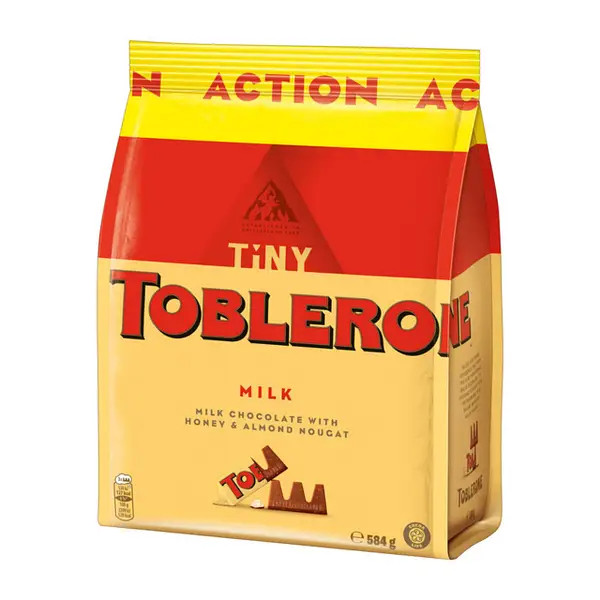 Перегляд Товару: Шоколад молочний трикутний Toblerone Tiny Milk&Honey Chocolate with Almond nougat з медом та мигдальною нугою 73шт 584г