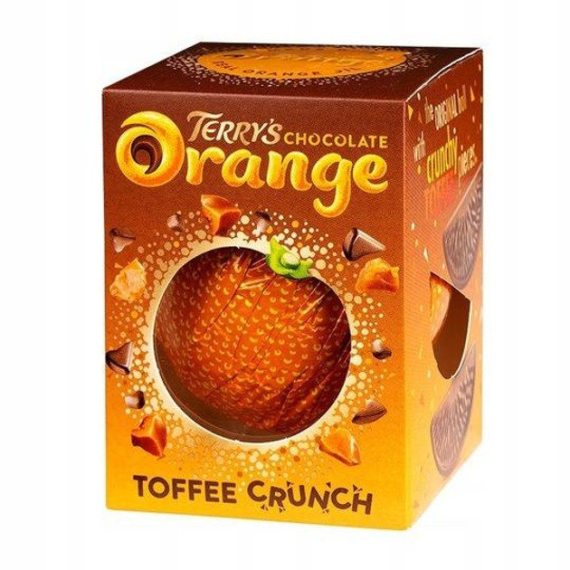 Перегляд Товару: Шоколад у формі Апельсина молочний Terrys Chocolate Orange Balls Toffie crunch шарики з хрустким тофі драже 152г