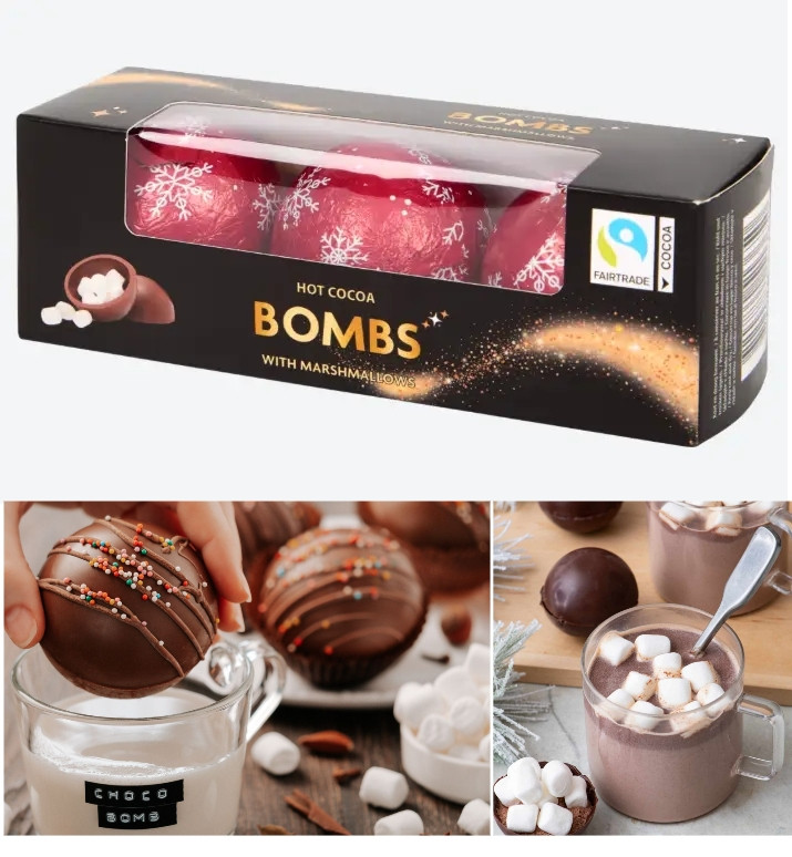 Перегляд Товару: Шоколадні бомбочки-кульки з Маршмеллоу ABS Sweets Hot Cocoa Bombs with Marshmallows для Какао та гарячого Шоколаду 3шт 72г