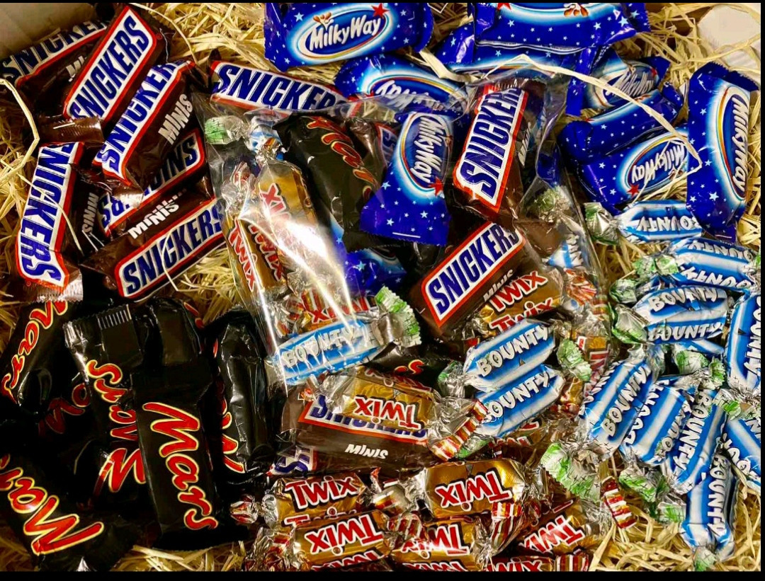 Перегляд Товару: Шоколадні цукерки асорті твікс,марс,мілківей ,снікерс 500 грам