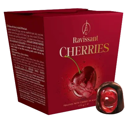 Перегляд Товару: Шоколадні цукерки вишня в чорному шоколаді з лікером Ravissant Сherries Praline праліне 175г