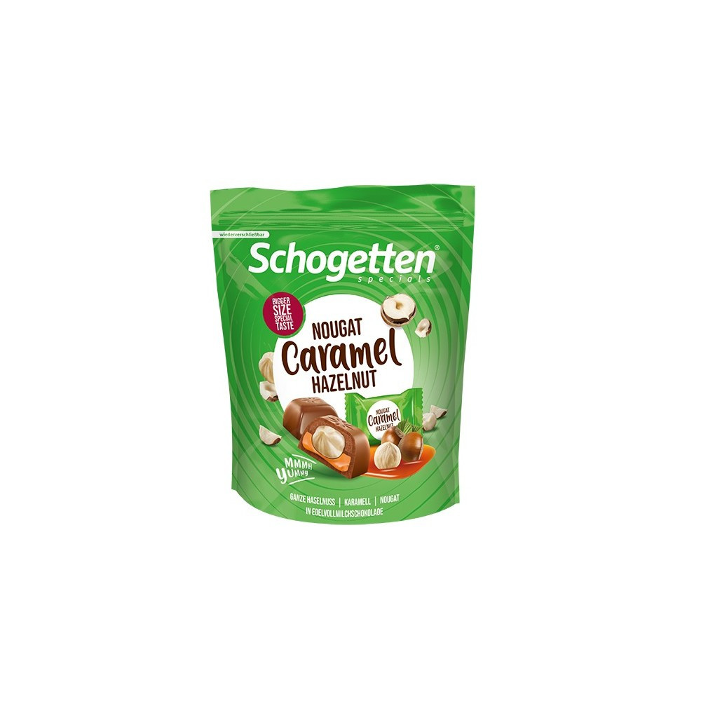 Перегляд Товару: Шоколадні цукерки з цільним лісовим горіхом та кремом нуга Schogetten Specials Nougat Caramel Hazelnut карамель 15шт 116г