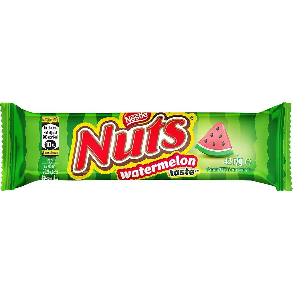 Перегляд Товару: Шоколадний батончик Nestle Nuts Watermelon Hazelnuts Нестлє Натс шоколадний Бар з смаком Кавуна та цілими лісовими горіхами 42г