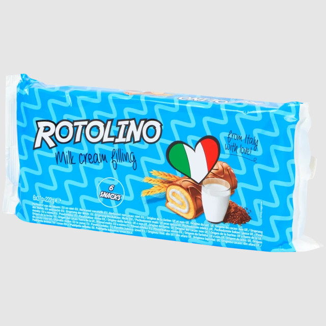 Перегляд Товару: Тістечка міні рулети шоколадні Balconi Rotolino Milk cream Filling Snacks Балконі Ротоліно з вершково-молочним кремом 6шт 222г