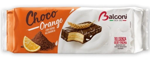 Перегляд Товару: Тістечка шоколадні бісквітні Balconi Choco Orange Tempting Cream Балконі з какао кремом Cпокусливий Апельсин 10шт 350г