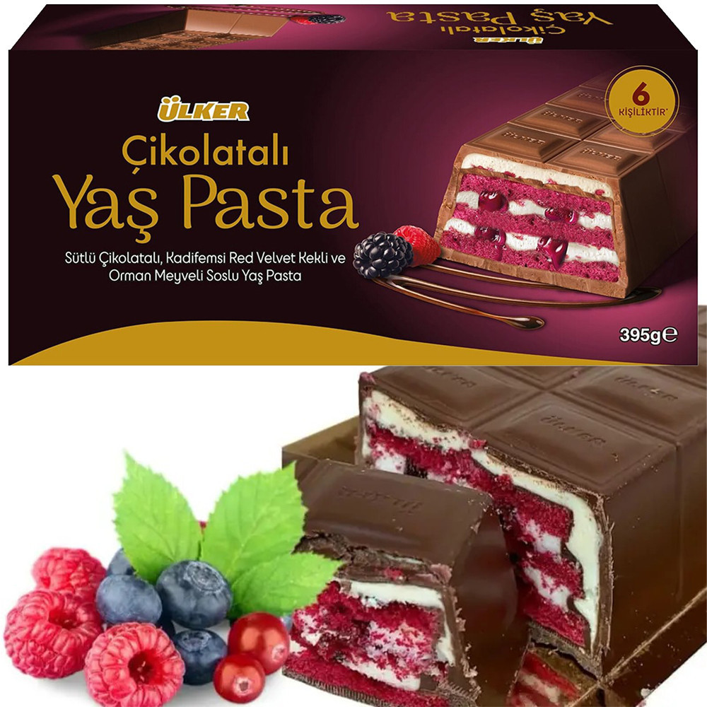 Перегляд Товару: Торт Шоколадка сендвіч Турецький Ulker Chicolatari Yas Oasta Chocolate Улкер Червоний велетень Вершковий крем та лісові ягоди 395г