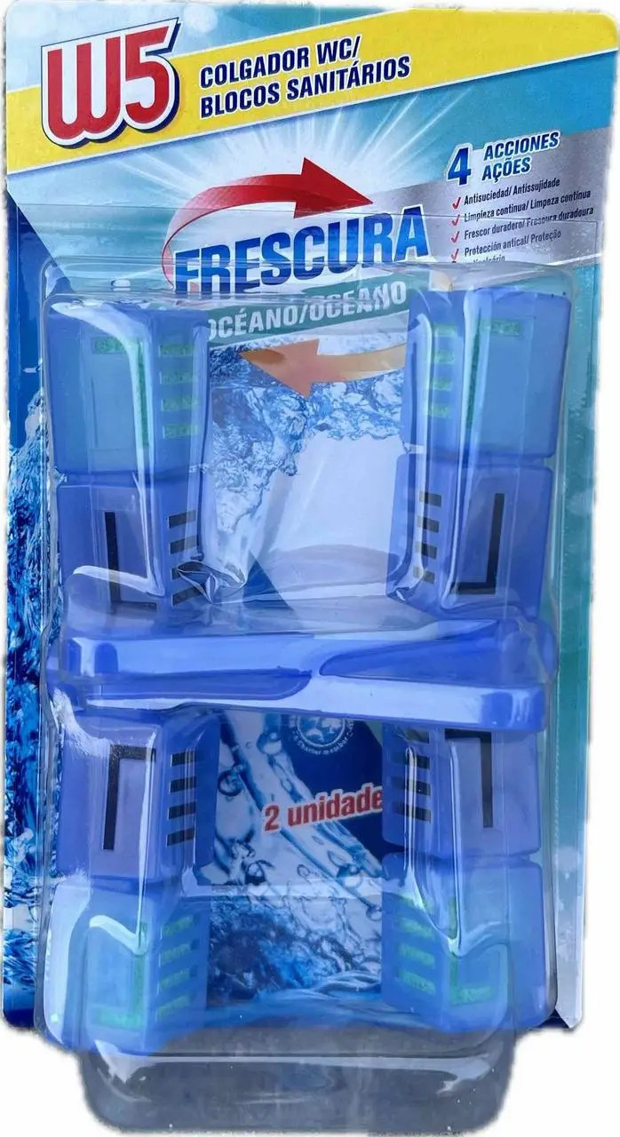 Перегляд Товару: Туалетник блок-підвіска для змивання унітазу W5 WC-block 4x power Ocean В5 Антикальк аромат бриз Океану Комплект 2шт 96г