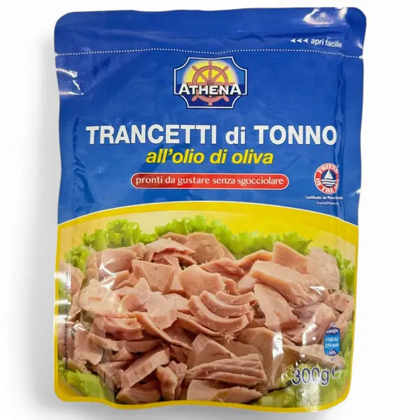 Перегляд Товару: Тунець шматочками Athena Trancetti di Tonno allolio di Oliva Атена Транчетті в оливковій олії 300г