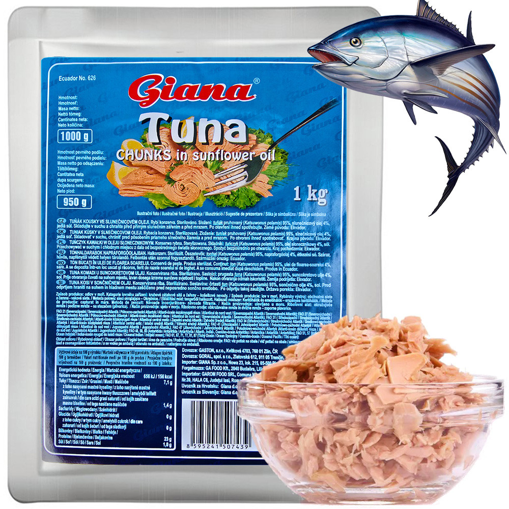 Перегляд Товару: Тунець шматочками Giana Chunks in Sunflower oil Джіана в соняшниковій олії Бігпак 1000г