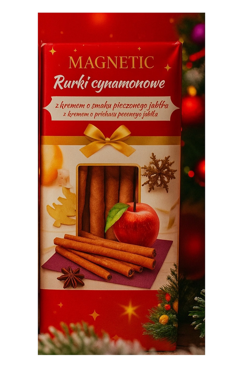 Перегляд Товару: Вафельні трубочки Руркі Magnetic Rurki Cynamonowe z kremem smaku Jablka Магнетік Палочки кориця з яблучним кремом 16шт 220г