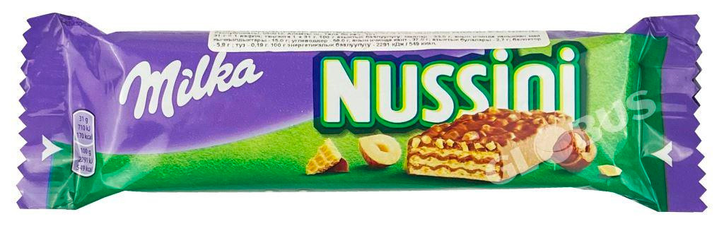 Перегляд Товару: Вафлі батончик Шоколадні Milka Nussini mini Мілка міні плитка з лісовим горіхом 32г