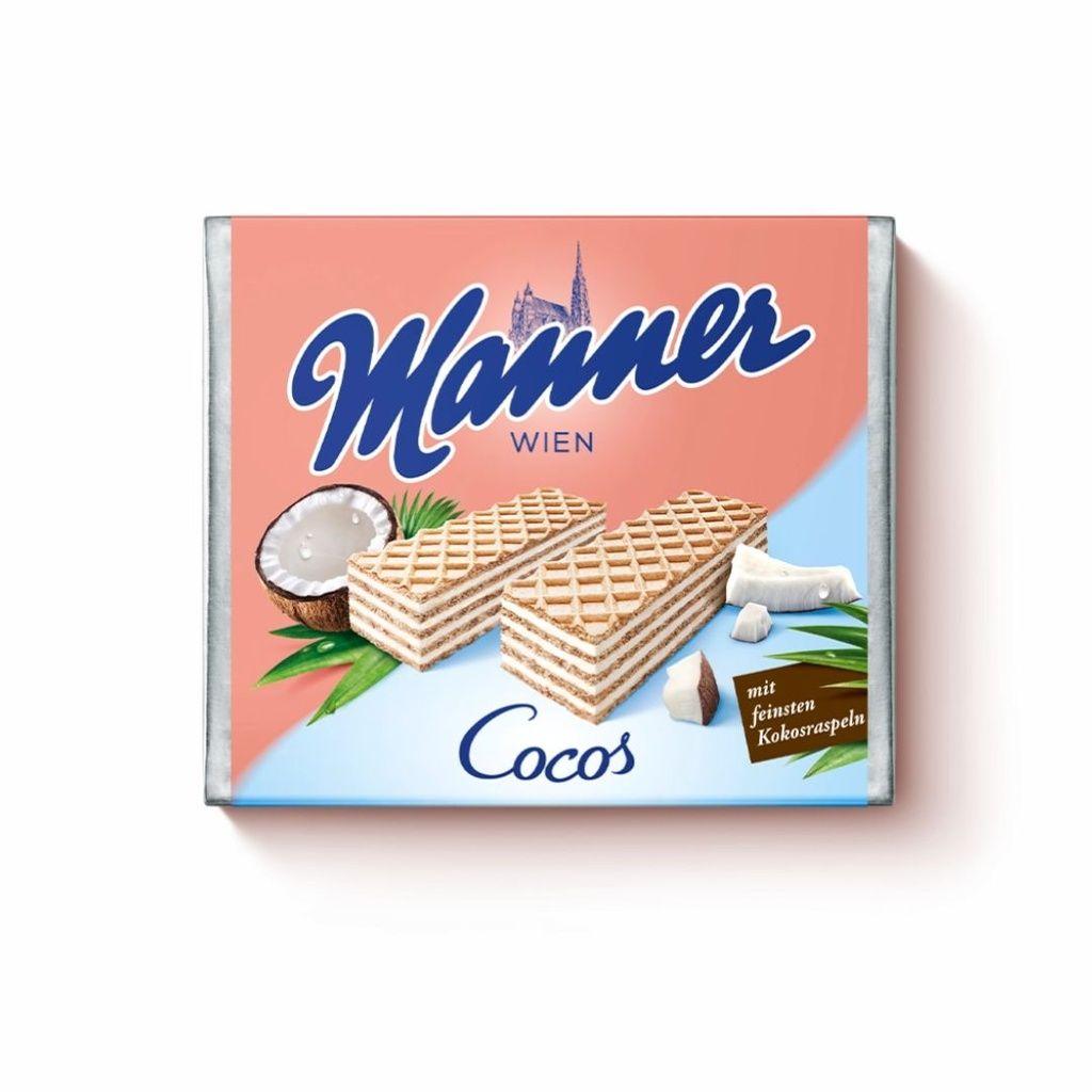 Перегляд Товару: Вафлі сендвіч Шоколадні Manner Wien Cocos Lemon Маннер ВІденьські з кремом з Кокосовою стружкою 4шт 75г