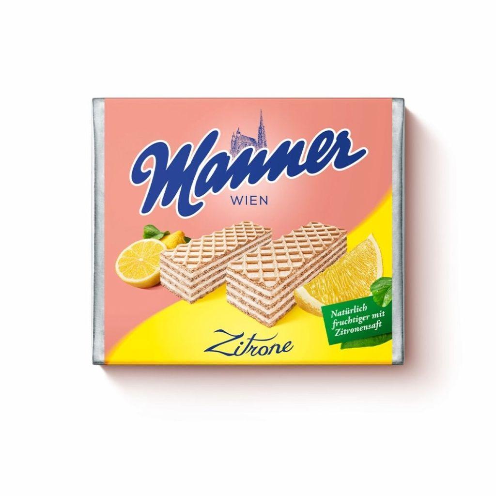 Перегляд Товару: Вафлі сендвіч Шоколадні Manner Wien Zitrone Lemon Маннер ВІденьські з лимонно-ванільним кремом 4шт 75г