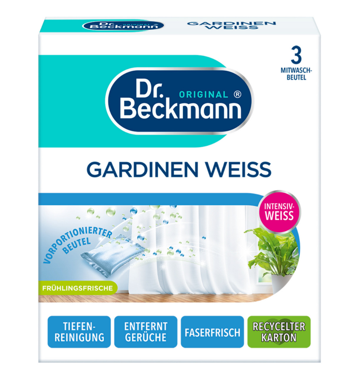 Перегляд Товару: Відбілювач для Штор та Гардин Dr. Beckmann Gardinen Intensive Weiss Mitwasch Beutel Доктор Бекманн в пакетиках 3шт 120г