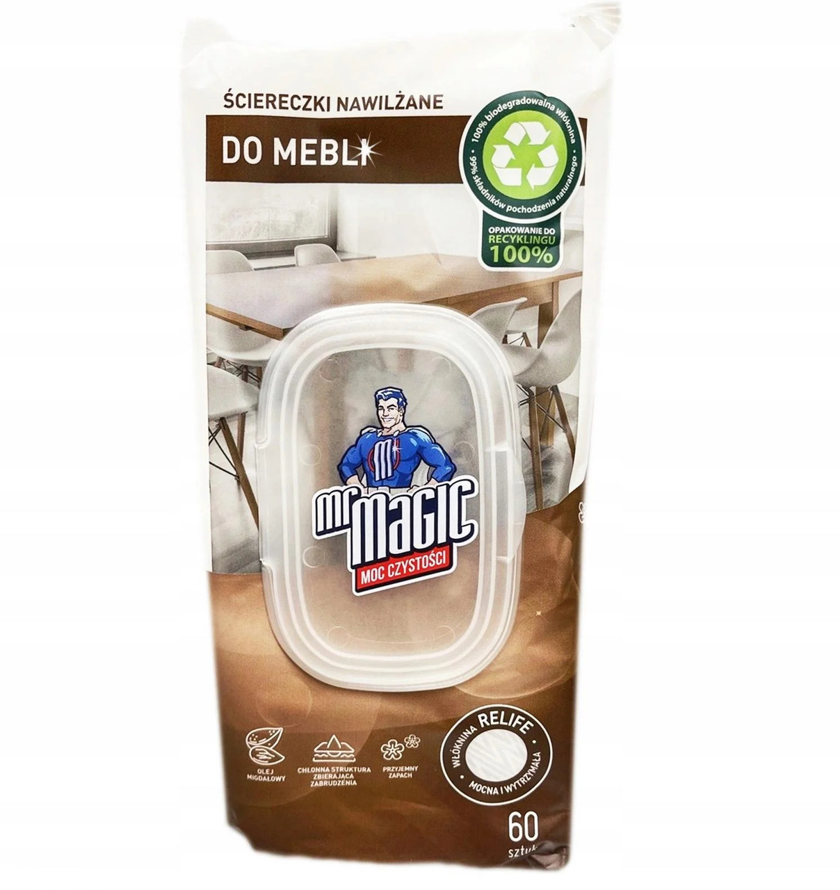 Перегляд Товару: Вологі серветки для Меблів Mr Magic Do Mebli мигдальне масло 60шт