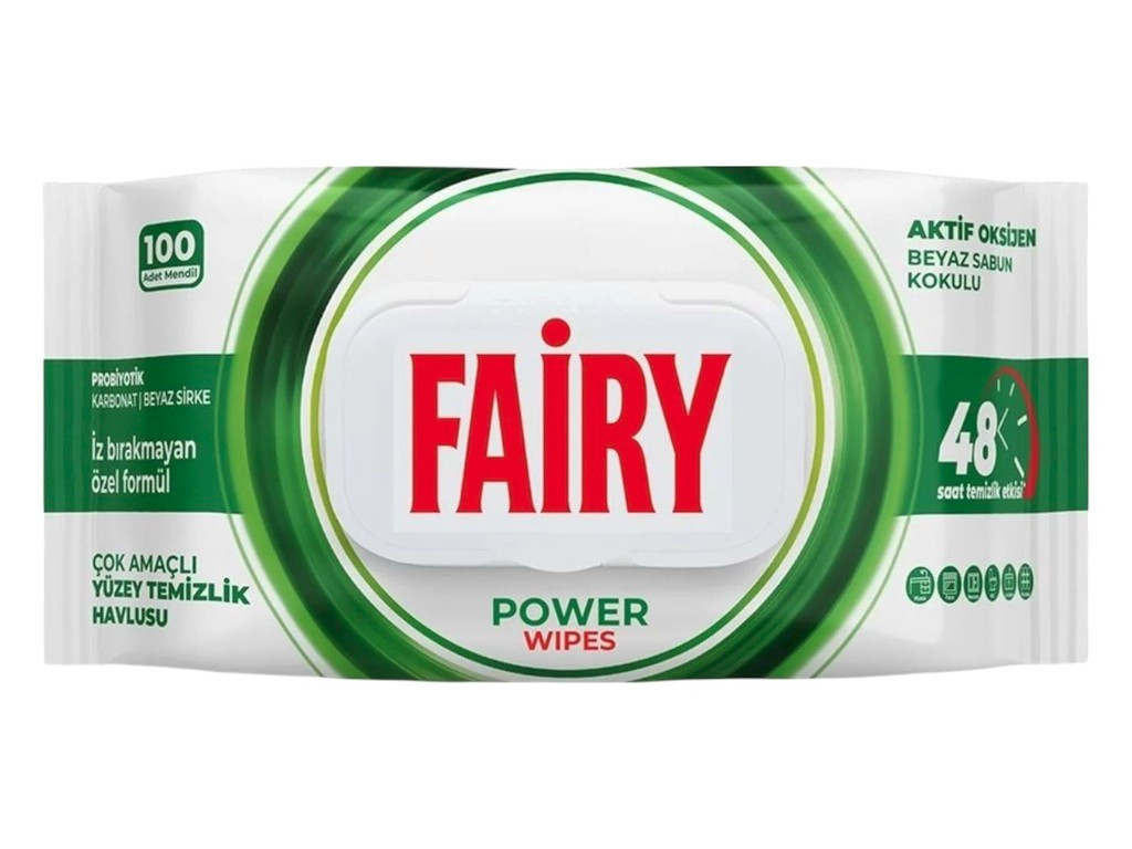 Перегляд Товару: Вологі серветки для прибирання Універсальні Fairy Power Wipes Active Oxy Фейрі плямовивідні Активний кисень з оцтом содою 100шт