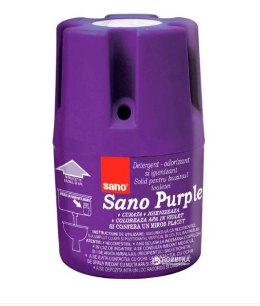Перегляд Товару: Засіб в Бачок для чищення та дезинфекції Унітазів Sano Detergent solid Odorant Purple Сано блок з Ароматизацією 900 змивань 150г