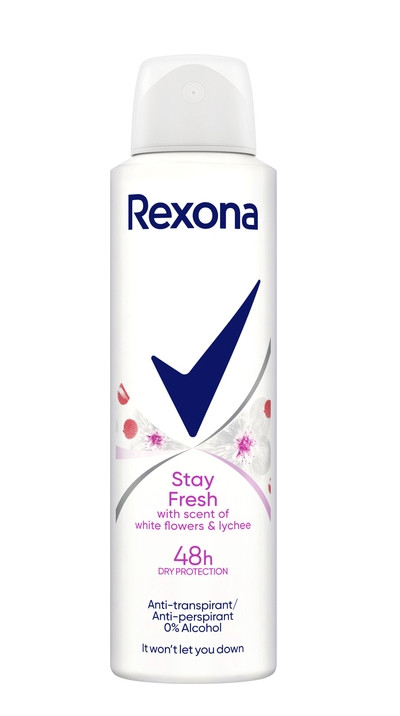 Перегляд Товару: Жіночий аерозоль Антиперспірант Спрей Rexona Stay Fresh White Flowers&Lychee Scent 48h Рексона Залишайся свіжою Білі квіти 150мл
