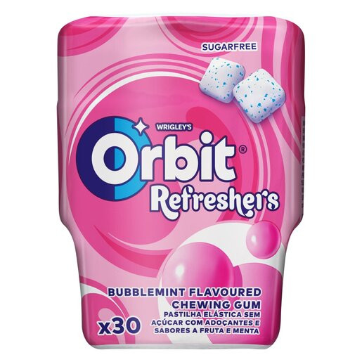 Перегляд Товару: Жувальна гумка Подушки без Цукру Wrigleys Orbit Refreshers Revigorant Bubblemint Орбіт жуйка біла БаблГам Мята Коробка 30шт
