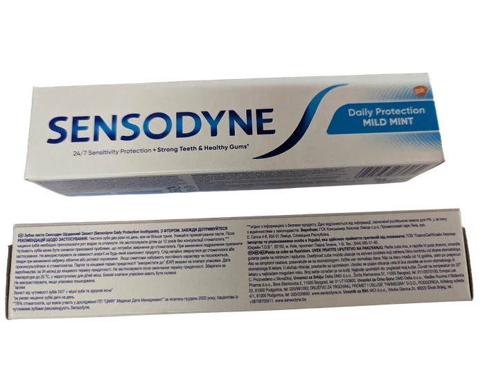 Перегляд Товару: Зубна паста денна Sensodyne Daily Protection 24/7 Sensitivity Strong Teeth&Healthy Gums Mild Mint Сенсодін сенсітів Мяка мята 50мл